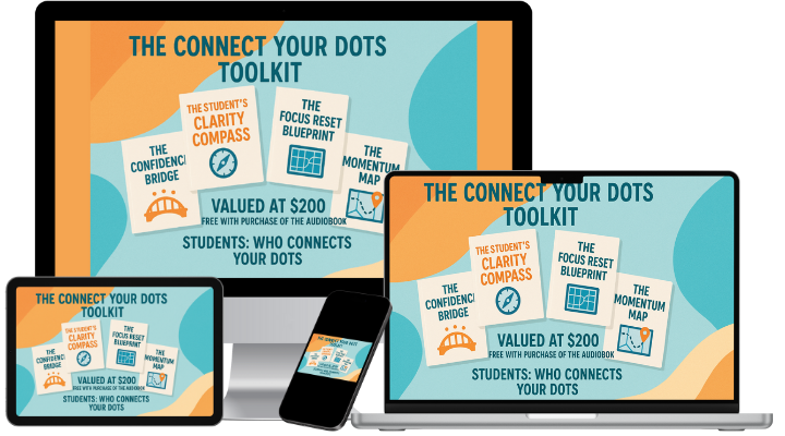 *Students: Who Connects Your Dots? audio is only $10 (normally $17 in retail stores) plus instant delivery anywhere in the USA. It's our goal to get this book into the hands and ears of as many people as possible around the world who want help with embracing a renewed sense of clarity, resilience, and forward momentum, rooted not in perfect outcomes, but in confident, adaptable decision-making and meaningful progress.